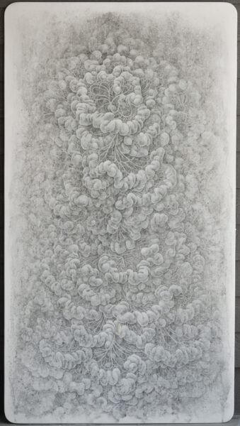 44 x 79 x ¾ inches silverpoint and acrylic on wood