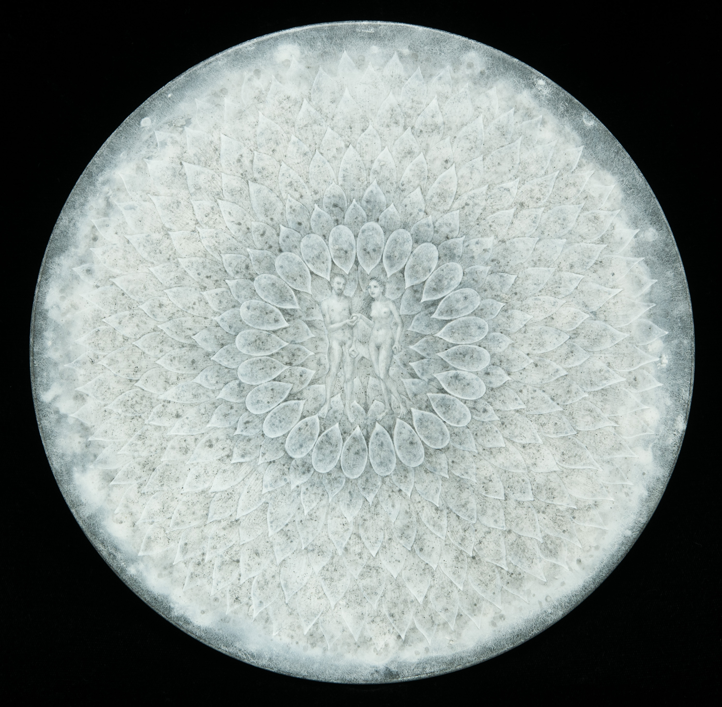 Silverpoint, graphite, titanium white pigment with acrylic binder on 1/4″ acrylic circle, cradled
