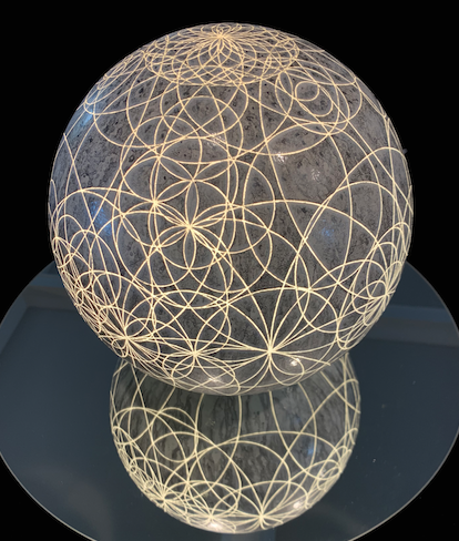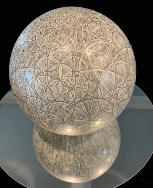 Silverpoint, graphite, stainless steel, titanium white and carbon black pigment with acrylic binder on acrylic sphere