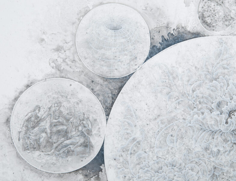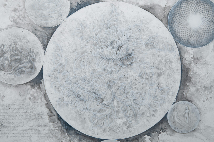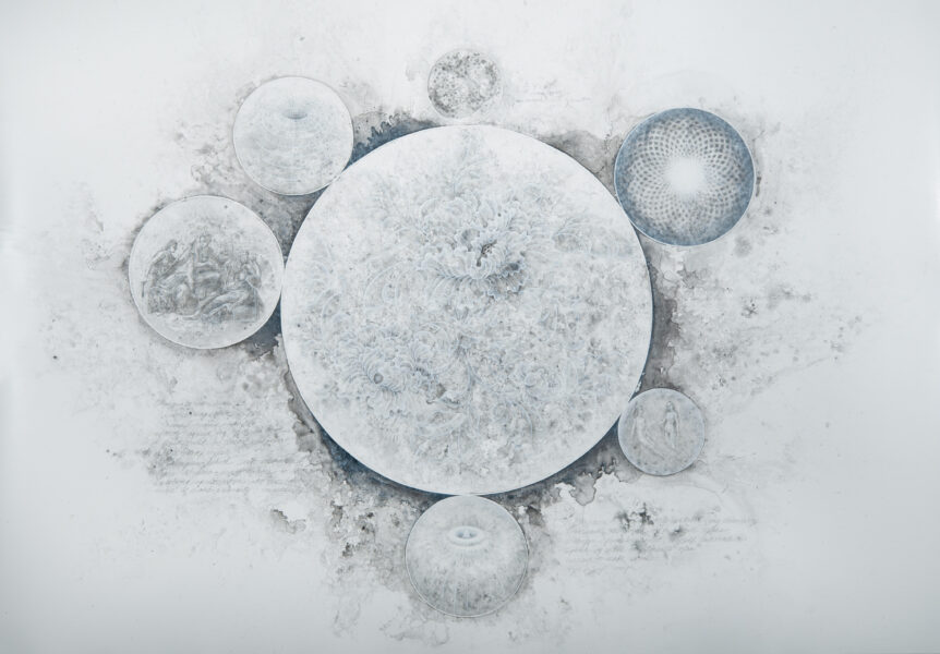 Graphite, stainless steel, acrylic on Yupo paper